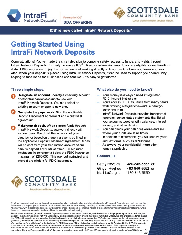 But with the ICS, or Insured Cash Sweep®, service, you can access multi-million-dollar FDIC protection with Scottsdale Community Bank.
